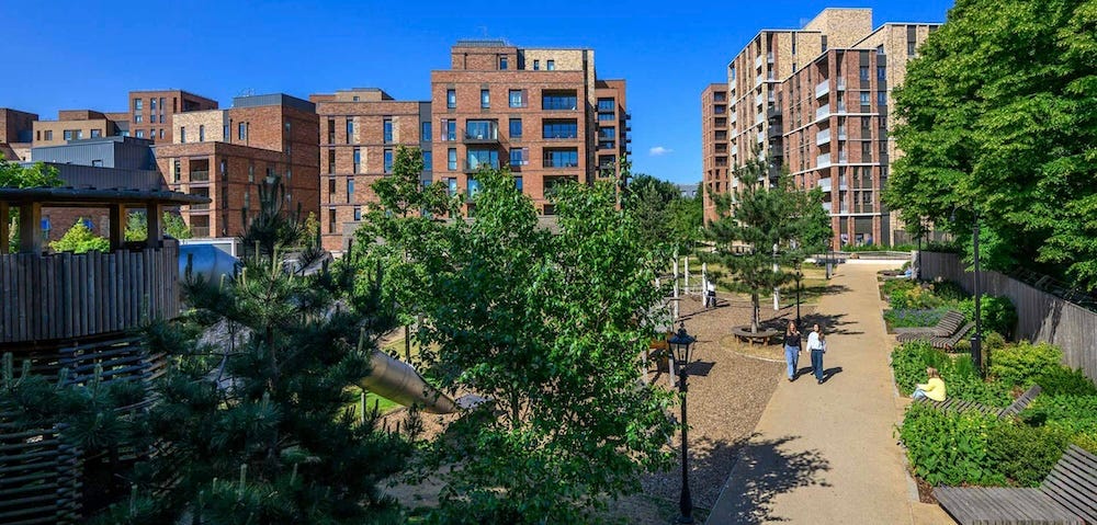 While new housing starts basically dried up in London during 2025, the volume builders did have a few ongoing projects they were still finishing up – such as Berkeley’s vast Alexandra Gate development in North-East London. Set within sight of the famous Alexandra Palace, you have the yummy mummy enclaves of Muswell Hill and Crouch End within striking distance, and gentrifying Harringay to the south too. The site itself though is in still-scruffy Wood Green. But at least this puts you nearer a tube (and, of course, those railroad tracks!) Berkeley’s own website is serving me with loads of errors when I click around it. But Foxton’s just listed this 833 sq ft two-bedder at Alexandra Gate for £665,000 on Rightmove.