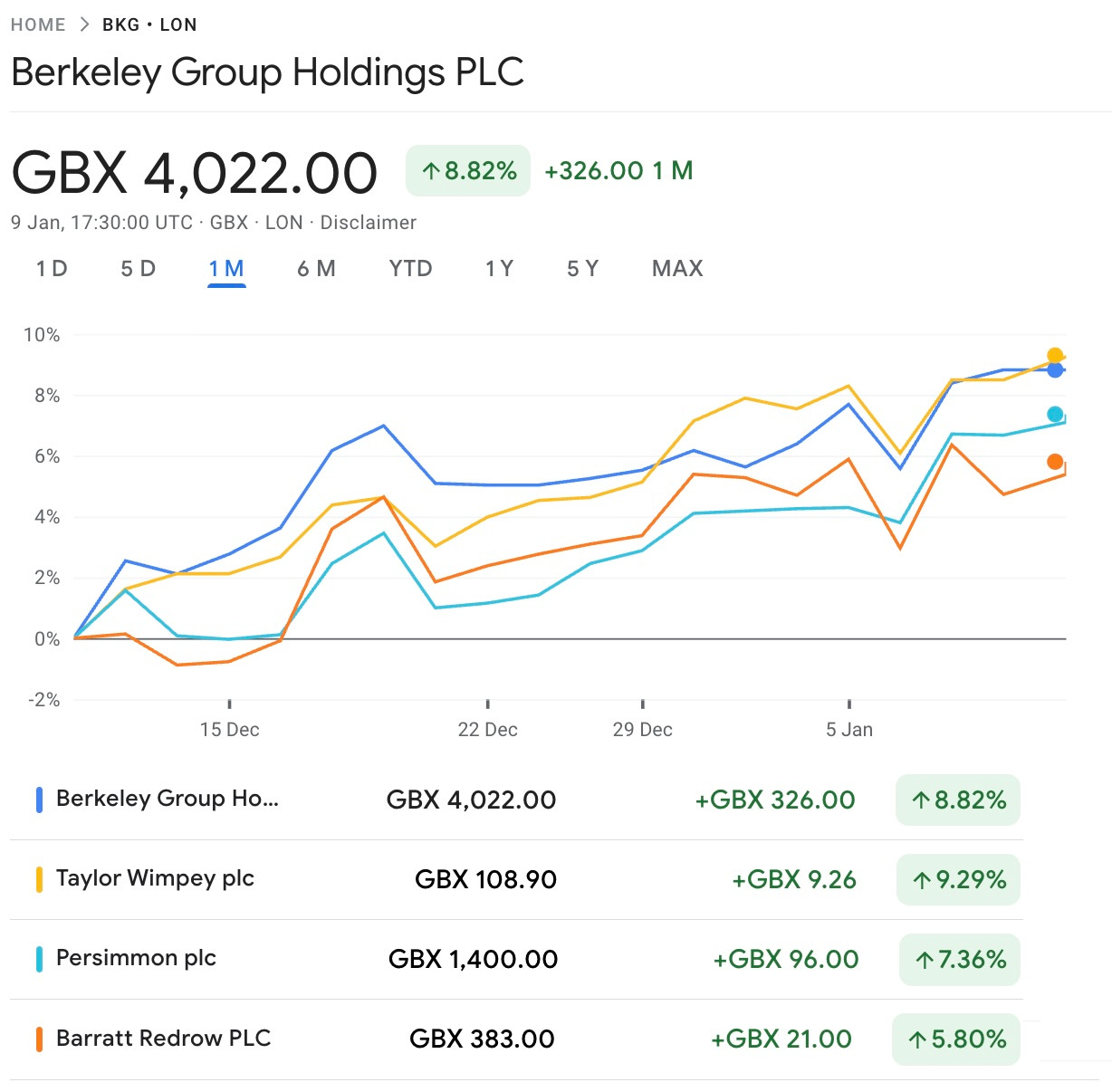 I suspect investors are also responding to the planning changes announced around the time of November’s Budget, such as a (supposedly) default ‘yes’ to proposals for new homes near trains stations and the further overhaul of the National Planning Policy Framework announced in mid-December.